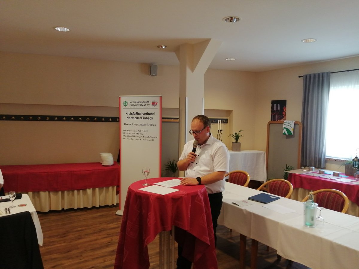 Ausgezeichnet wurden Hans-Jürgen Matz (SC Schoningen) als Kreisehrenamtspreisträger und Ron Hardies (SV Moringen) als Fußballheld. Zudem wurden Björn Petersen (SG Wolbrechtshausen-Hevensen) und Michael Wolkenhauer (TSV Großenrode) als stille Stars ausgezeichnet. Weitere stille Stars sind darüber hinaus noch Tobias Grothey (TSV Hollenstedt) und Ullrich Hoffmann (SV Mackensen), die leider nicht anwesend konnten, so dass ihre Ehrung nachgeholt werden