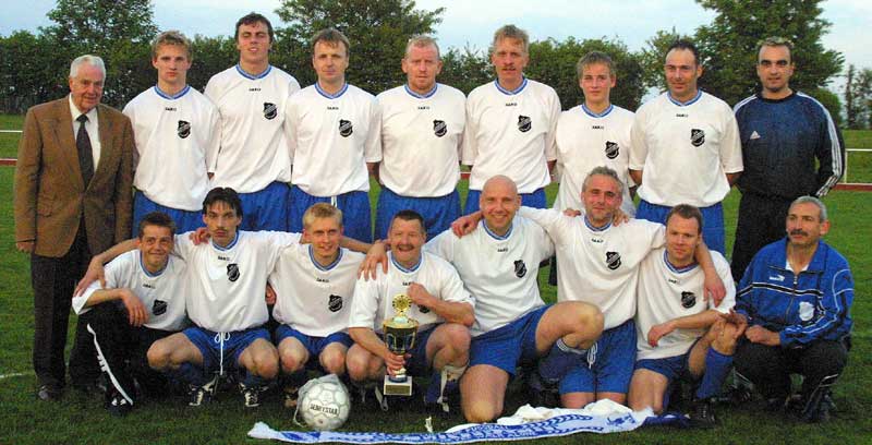 Michael Schädel, Betreuer Jörg Huwald, Björn Pflugrad, Björn Blank, Axel Schunke, Henning Lillig, Andreas Hagedorn, Kapitän Steffen Ehling, Detlef Weichenhain, Trainer Stefan Schlimme, Betreuer Martin Nobel, FC- Vorsitzender Manfred Nienstedt ;