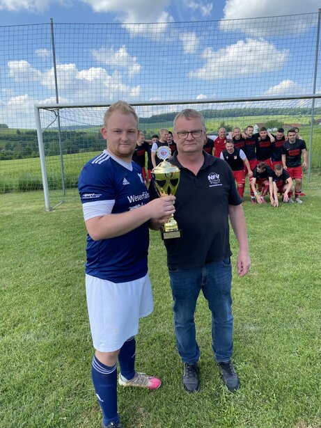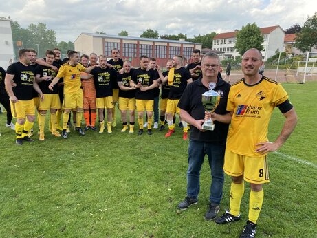Mit dem Pokal: Michael Kellner (Mannschaftsführer)