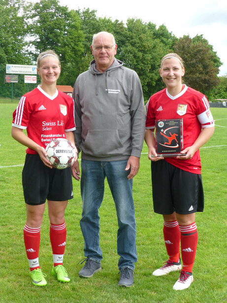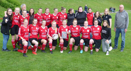 Stehend von links: Nadine Hoffmann, Merle Oehlsen, Johanna Schneider, Matthias Idahl (Trainer), Josy Stein, Farina Traupe, Friederike Müller, Josefine Brand, Kerstin Berger, Nadine Neumann, Lisa Idahl, Jona Hettling, Jana Nack, Lara Rieseberg, Uwe Achtermann (Staffelleiter Bezirkspielausschuss Braunschweig).