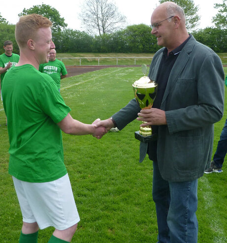 Pokalübergabe durch den Staffelleiter Jörg Henne an den Mannschaftsführer Kevin Schmidt